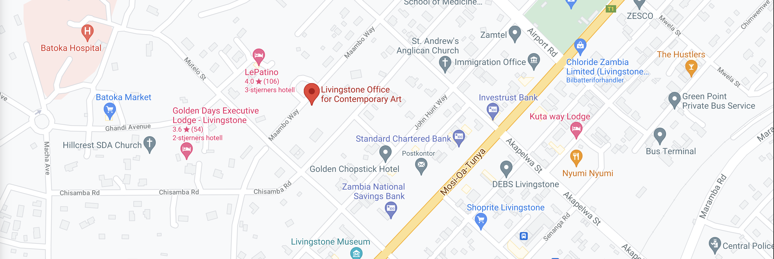 CONTACT Location: Likute Way 34, Town Area (300m from the Livingstone Museum and entry on Maambo Way) Email Address: loca.contemporary@gmail.com Telephone: +260 973008762 +260 965449618 +47 4055 0791